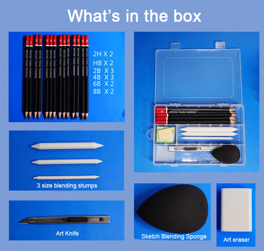 21-Piece Sketching Pencil Set with Blending Stumps, Eraser & Knife