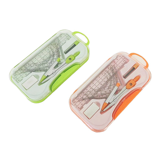7 Pieces Complete Geometry Maths Set with Metal Compass - Set of 2