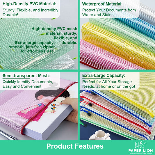 10 Pcs A4 Classic Color Mesh Files Zip Lock Bag
