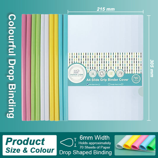 10 pcs A4 Slide Drop Grip Binder Cover - Colourful Collection