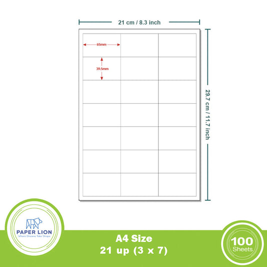 Paper Lion 21 Up A4 Self-Adhesive Labels 100 Sheets