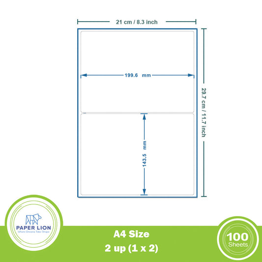 Paper Lion 2 Up A4 Self-Adhesive Labels 100 Sheets