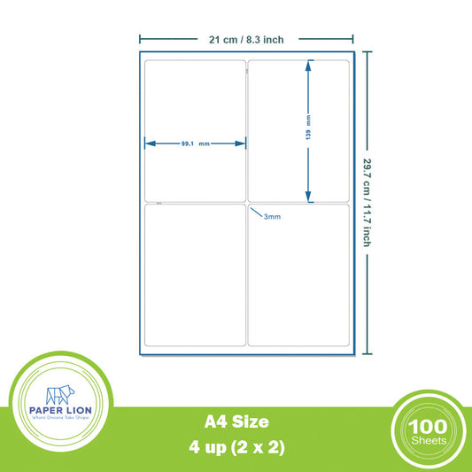 Paper Lion 4 Up A4 Self-Adhesive Labels 100 Sheets