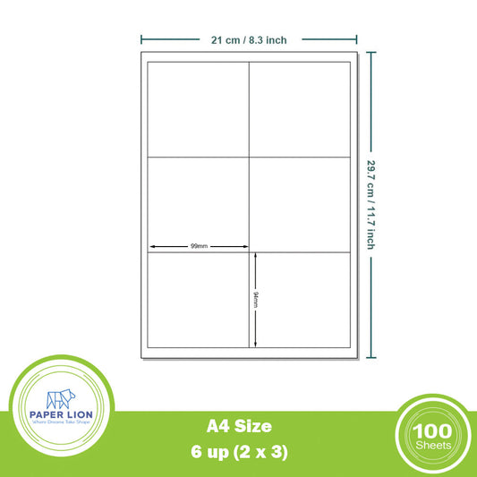 Paper Lion 6 Up A4 Self-Adhesive Labels 100 Sheets